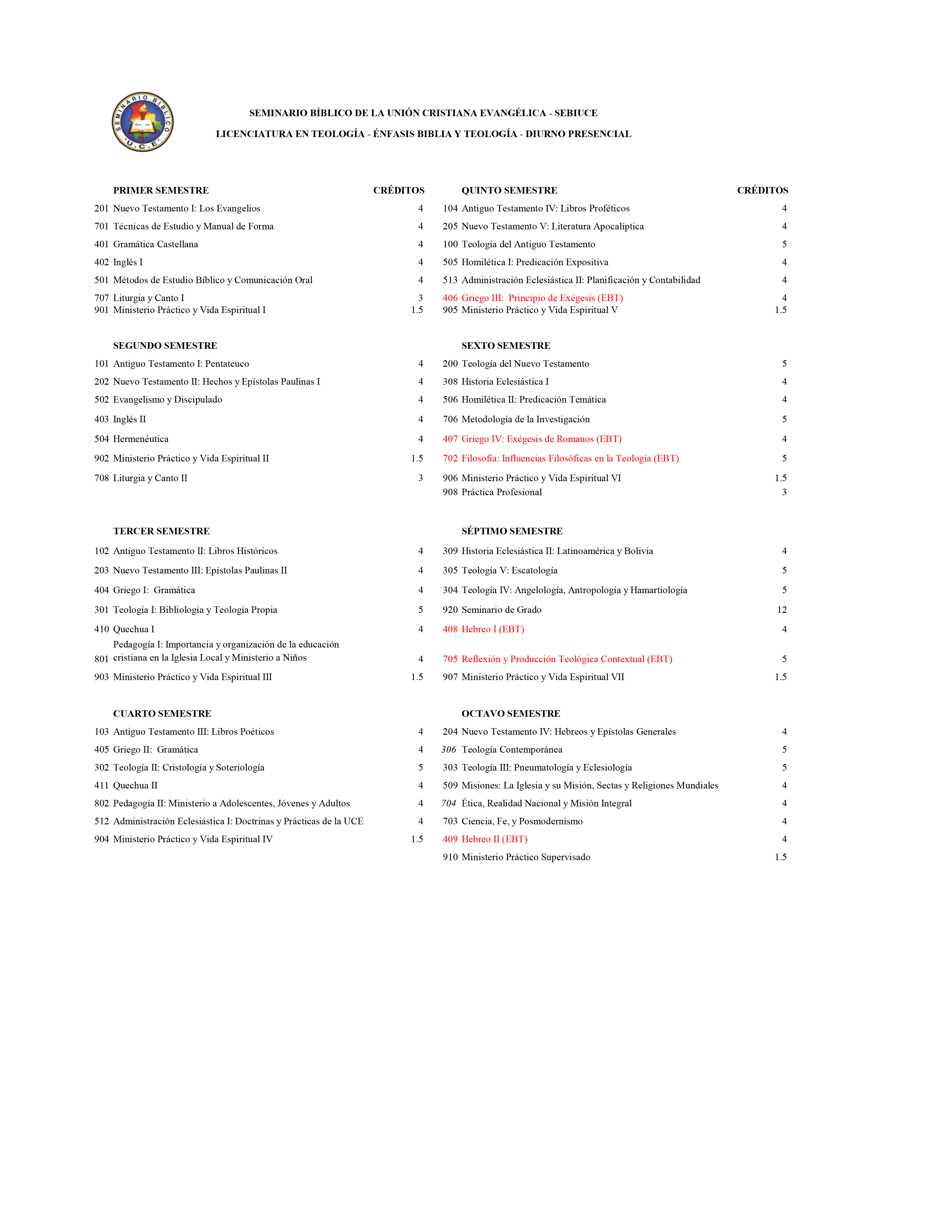LICENCIATURA EN TEOLOGÍA ÉNFASIS BIBLIA Y TEOLOGÍA (Modalidad Presencial)