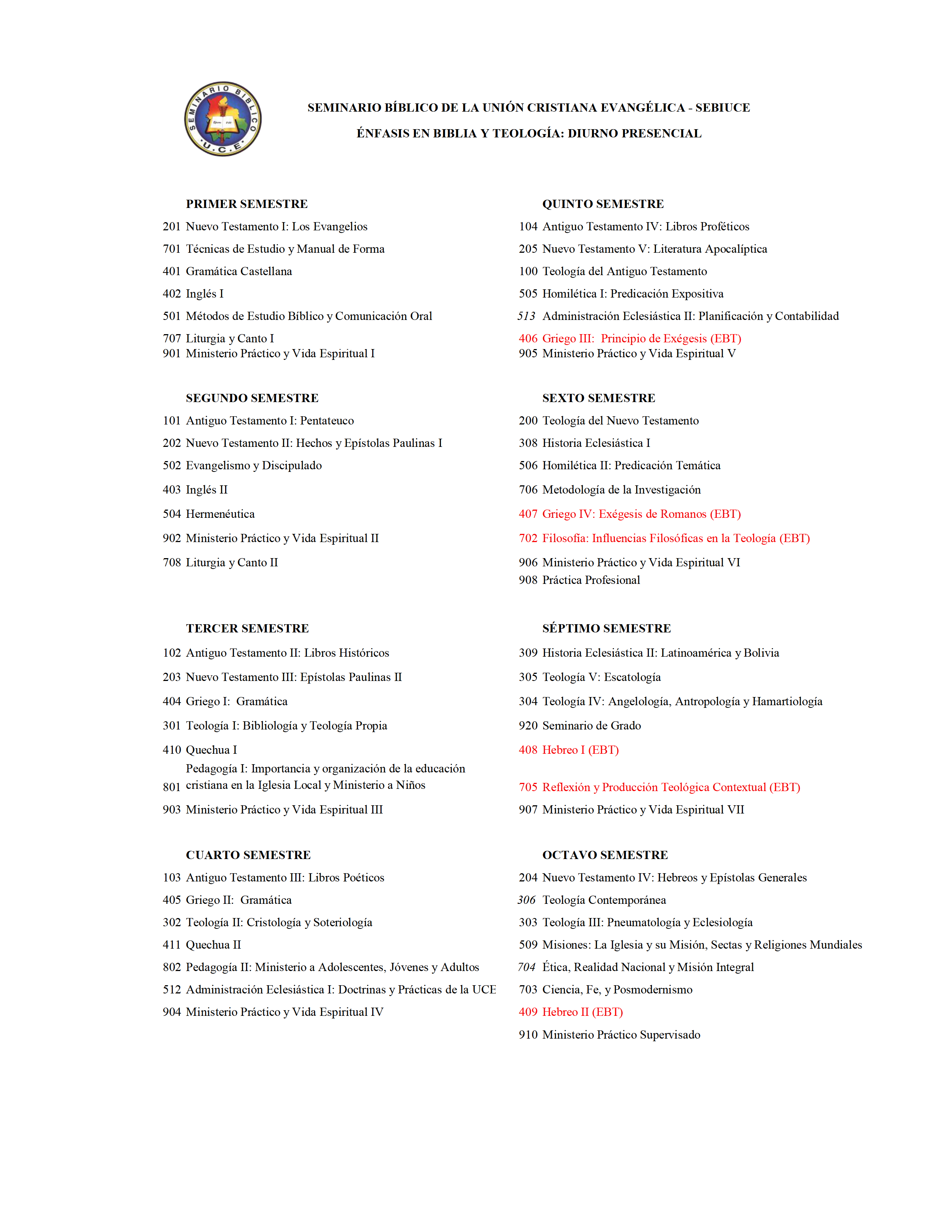 Énfasis En Biblia Y Teología: Diurno Presencial