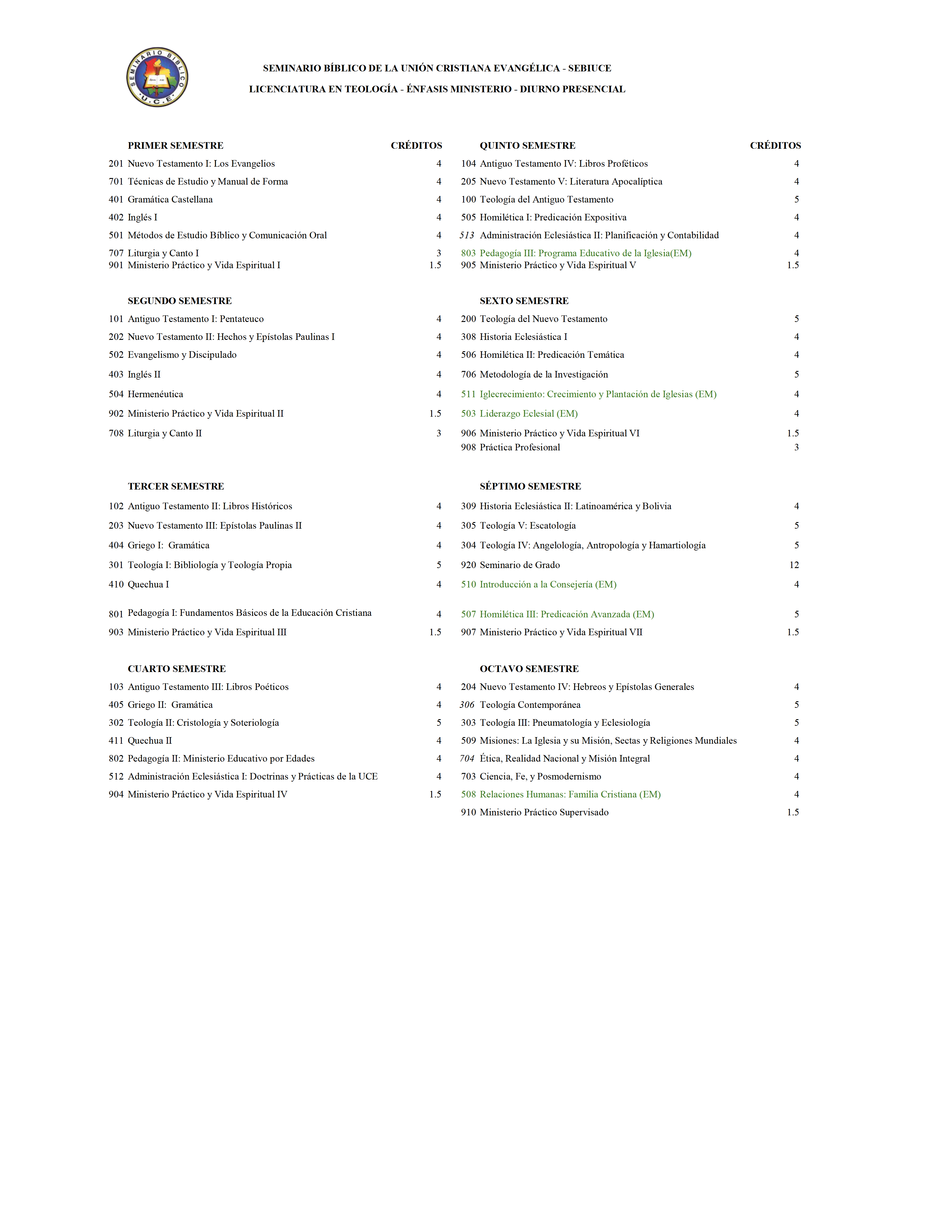 LICENCIATURA EN TEOLOGÍA ÉNFASIS