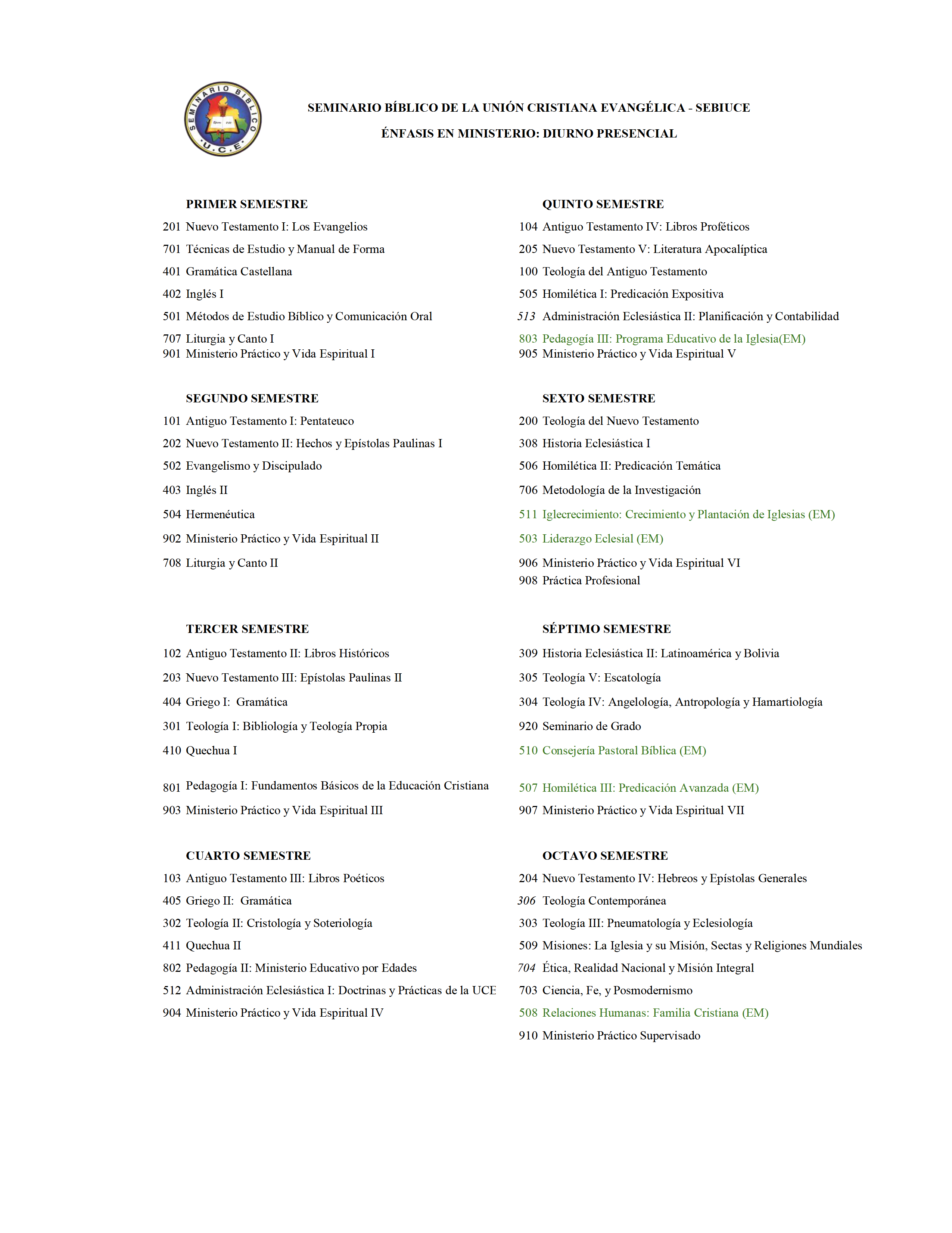 Énfasis En Biblia Y Teología: Diurno Presencial